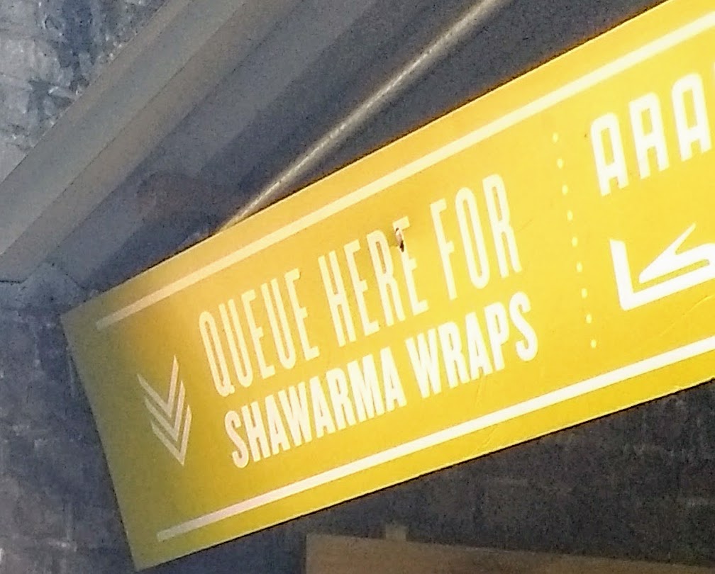 Now, it’s worth pointing out that I could have eaten almost anything for breakfast. When I arrived at 12pm after a few hours “fannying about”, the market was in full swing, and it was like one of those World Buffet style places, except it wasn’t awful. There was Egyptian food, Indian street food, hog roasts, Caribbean, good old fashioned barbeques, and of course, the shawarma. It won’t surprise anyone to hear that I went for the latter.
