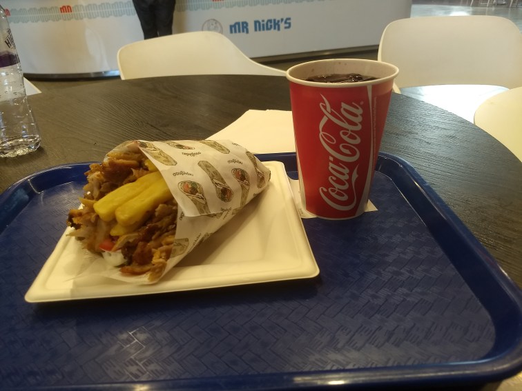 For fairness, I was eating (and drinking) the same thing at both places – and MacTasso’s being smaller has a limited menu, so I chose a meal that I was confident I could get at both – chicken gyros and a diet coke. Whereas the MacTasso’s offering was shaved, tender and succulent, the chicken on offer at Mr Nick’s was none of these things. Whilst there were spits (photographic evidence above) all the chicken came from the buffet tray. The cut was different as well – I’m no chef but the chicken at Mr Nick’s was more like leg meat – a bit dry, whereas MacTasso’s sourced theirs from a plumper part of the clucker. It was also quite salty.