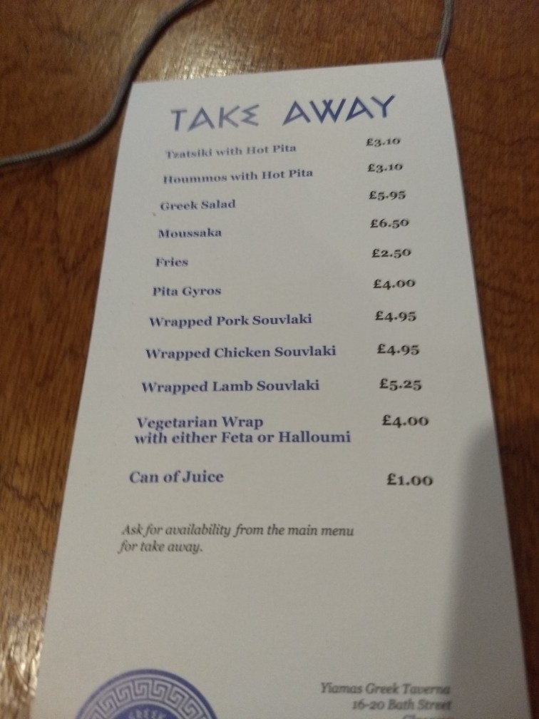 A visit to Yiamas has been long overdue. For all I talk of Glasgow’s kebab district; the plethora of decent food available in the environs of West Nile Street, Yiamas has been a notable omission. To make matters worse, I went and reviewed the gyros vendors in the shopping centres before I got a chance to write this place up. I am very sorry, and it won’t happen again.