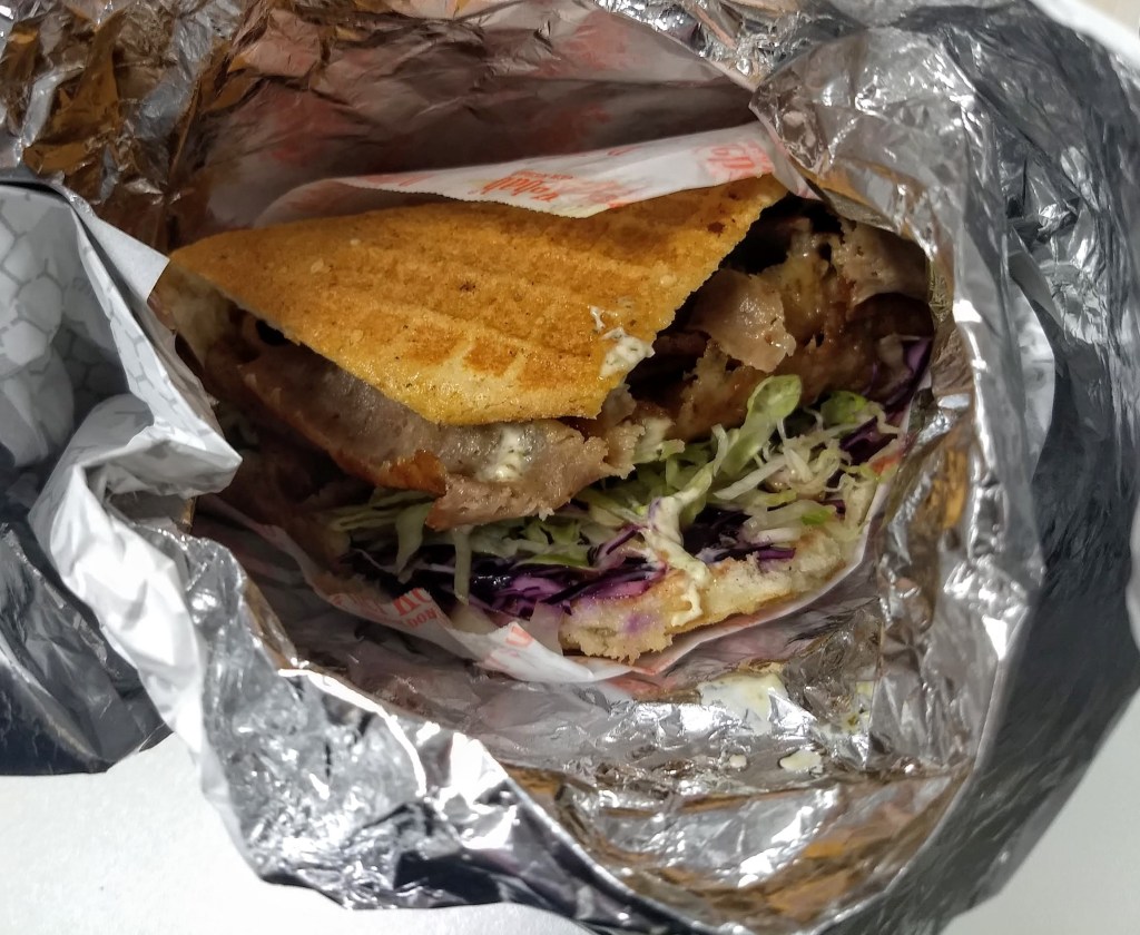 Wow. Totally impressed by this – for one thing, it’s foil wrapped to keep it warm – underneath you have the fladenbrot (or “toasted waffle bread” as GDK’s social media has referred to it), lean beef doner meat, three sauces – yoghurt, spicy and garlic, and a reasonable amount of salad. The bread here is key – I genuinely think the bread they use is the best in the business. The doner meat has got to be up there with the best – though they use beef rather than lamb as is more common in the UK for their red meat option, it’s not half bad – they make the claim that it’s lean meat, which I don’t doubt – but the fear I get with lean meat is that it will be dry – and this isn’t. This is not fatty in the slightest, and very tasty. The three sauces? They’re alright, I guess. When I reviewed the Croydon branch eons ago, I raved about them – but now I guess everyone else has upped their game, so the sauces aren’t quite the game-changer or USP they once were.