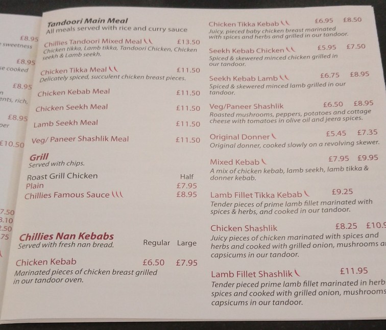 I have only been to Chillies once before, and I gotta tell you, dear reader, I loved it. In a time where most kebabs were decidedly ropey in this part of the world, Chillies stood out as a superior product. Trouble is, until today, I never went back, and I cant work out quite why. A place I’ve always rated, and this is (from memory) only my second visit?