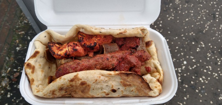 So, idly walking by, as I said earlier, I went in. Such was my head, I needed something substantial, so I ordered a regular mixed kebab. This is what you get: