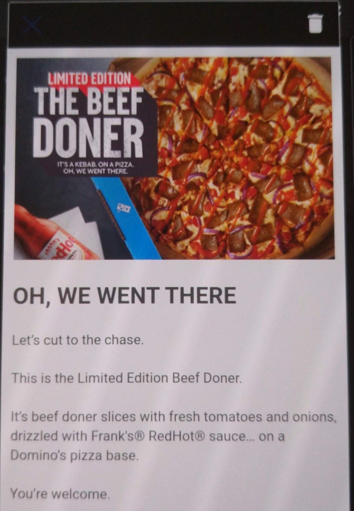 So why have Domino’s jumped on the kebab wagon? I done a google, where I found this press release on their corporate website. Domino’s UK write: