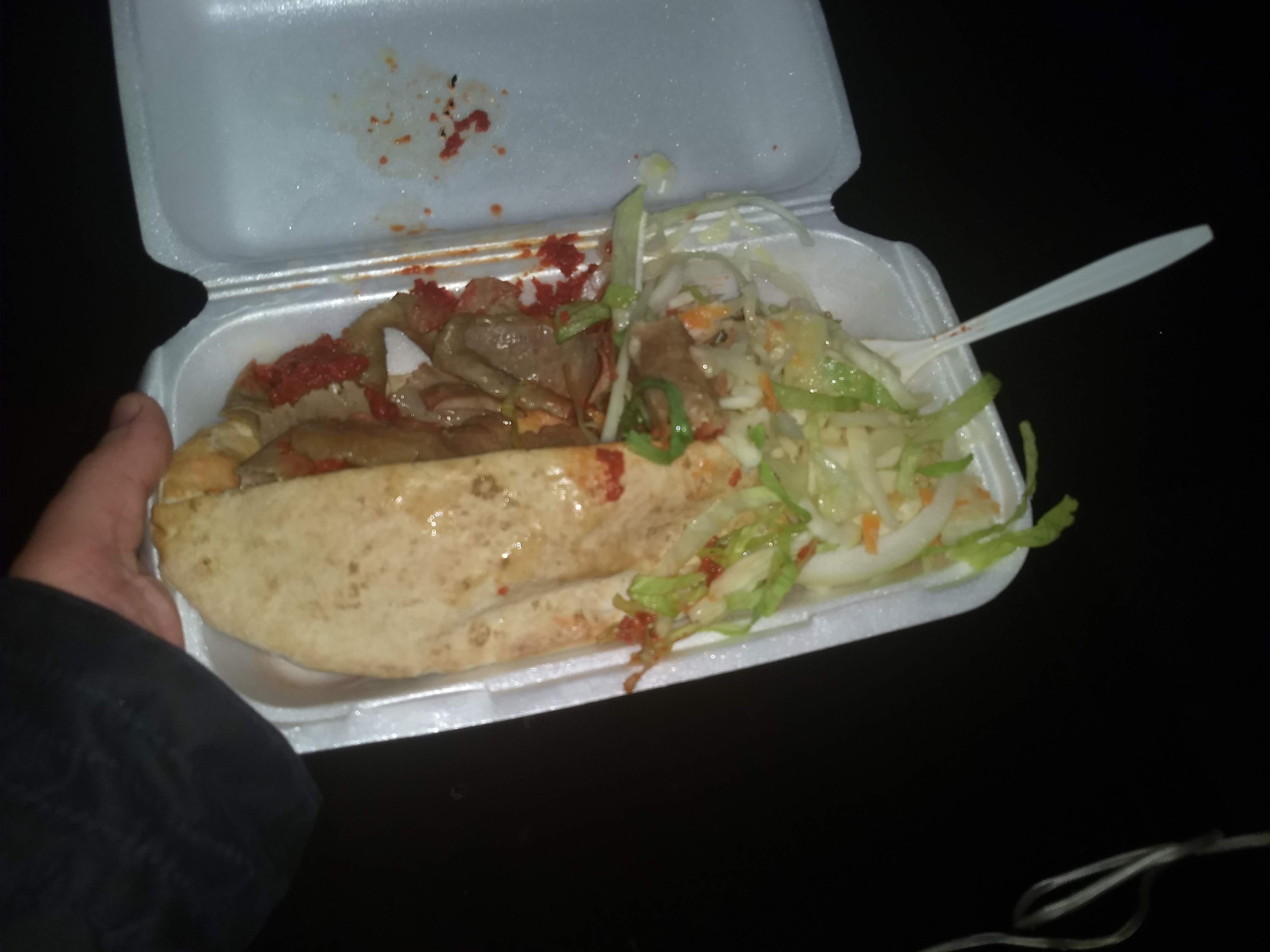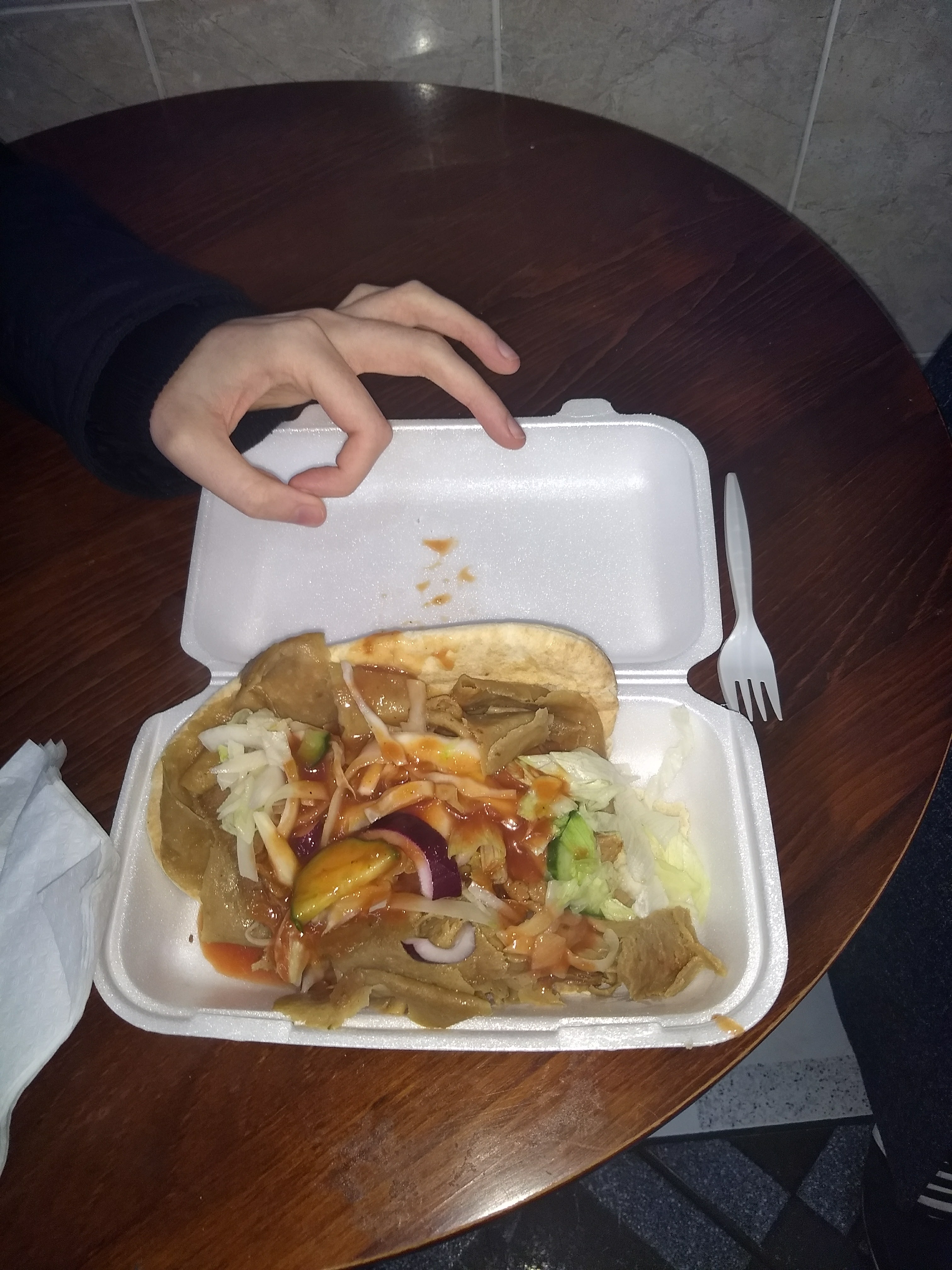 That said, you pay for the convenience, and I suppose the price they pay for opening late in a fairly central city centre location is reflected in the price you pay for the food, and this was like seven quid or something. Plus: Pitta bread. Went soggy in under 30 seconds. Taste-wise it was ok, but overall, not a fan.