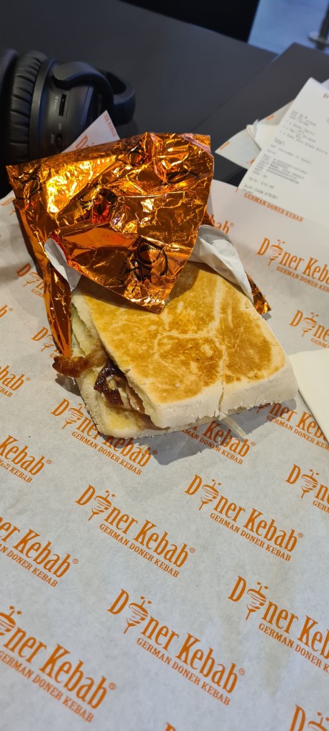 “Ooh”, I thought. This could actually be a real game changer! You see, I like kebabs (this much I assume you’ve already gathered), but they’re an evening meal in my book. The panini, however – that’s lunch. Could I be tempted to pop in on a lunch break for one of these? Well, if I wasn’t working from home, almost certainly. But wait… there’s more? You see, whilst doing my homework on this (i.e. reading the website), I noticed another new addition to the menu – what they call the “Doner 2.0” menu – the Berlin Strasse. What this is, ladies and gentlemen, is the lahmacun wrap but with chips, doner and salad in the middle – GDK already do a durum wrap – but not with chips. Clearly they want a piece of the lucrative gyros market, but in their own unique way.