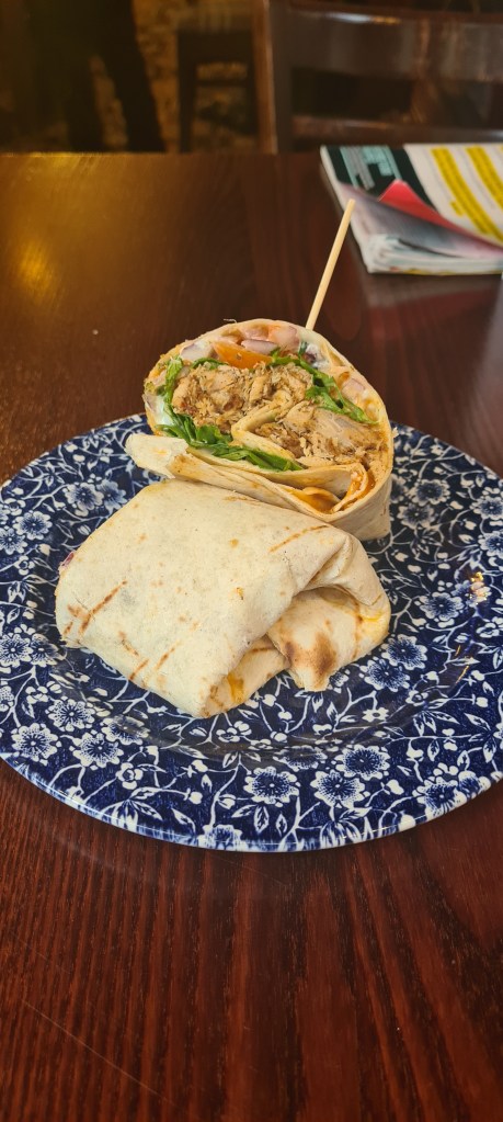 With the limited availability disclaimer out the way, is it any good. Reader, let me tell you this: they’ve nailed it. I don’t know how, because on paper it doesn’t work, but it does. The wrap is a standard tortilla wrap, to start with. Nothing grand about it. The sauces are the same sauces they use for other things – the spicy sauce is the naga sauce from their chicken wings, the garlic sauce appears to be their standard salad dressing. The salad itself is more finely chopped than a standard Wetherspoons side salad, and the shawarma, no idea how it’s cooked but it’s very reminiscent of the stuff you can get out of Asda – basically sous vide stuff that you cook for 30 minutes, and then shred with a couple of forks.