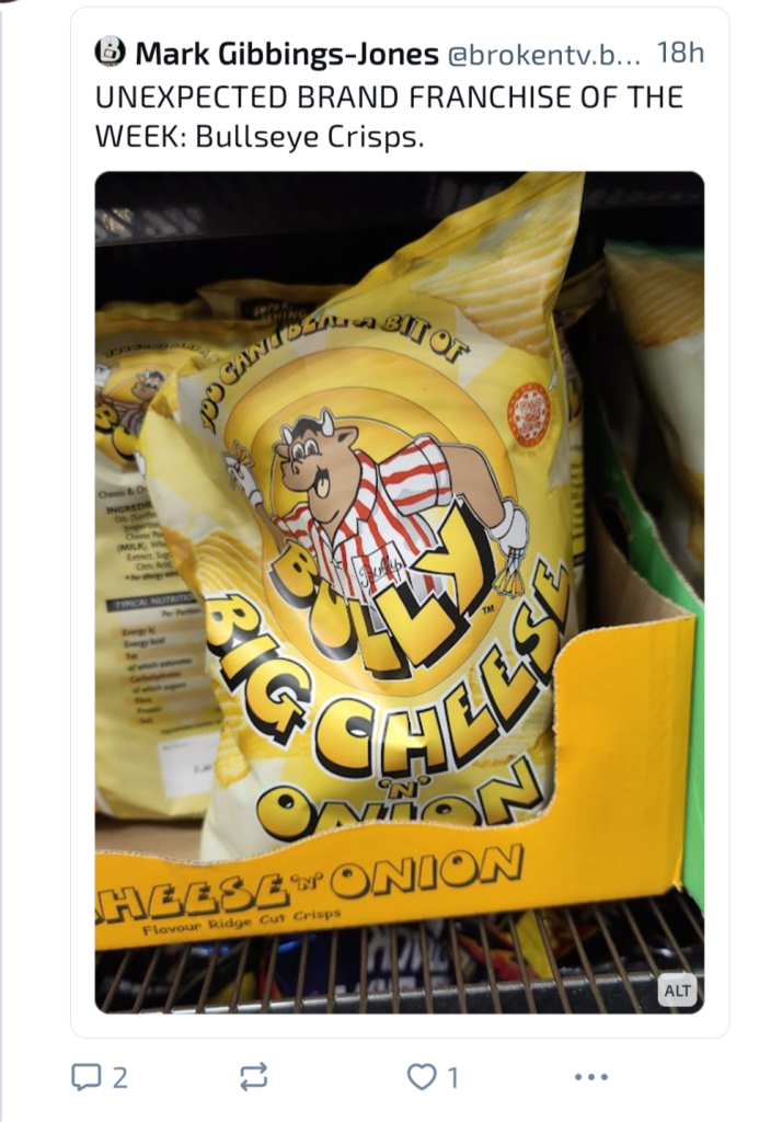 Today’s review comes from Glasgow’s Trendy West End, and has happened quite by accident – Today’s plan was to go to Home Bargains to buy some Bullseye crisps, that’s right, Bullseye crisps, the internet told me they exist and provided photographic evidence: